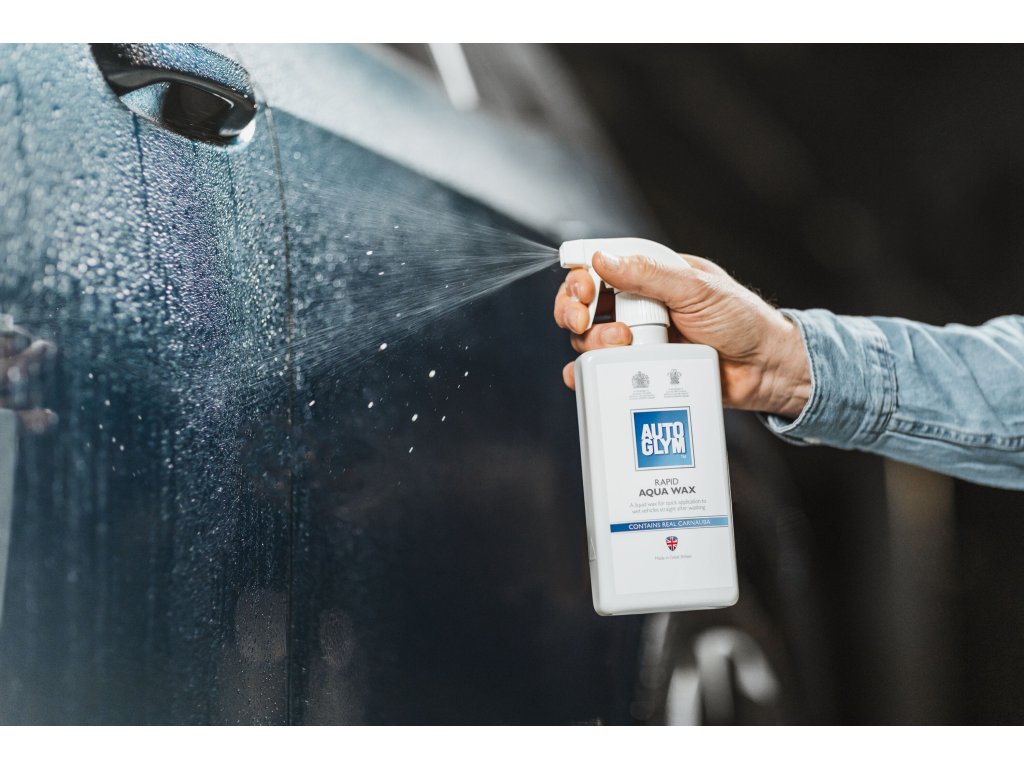 Veľmi rýchly a účinný produkt, ktorý nezanecháva šmuhy a je vhodný pre všetky typy lakov. Výhodou produktu je že nemusíte vozidlo sušiť medzi umytím a voskovaním, čo vám ušetrí čas a námahu. AUTOGLYM Aqua Wax je ideálne použiť priamo po umytí. Jeden z najjednoduchších spôsobov, ako umyť a navoskovať vozidlo v dvoch krokoch. AUTOGLYM Aqua Wax môže byť použitý na všetky typy materiálov vrátane metalických lakov, gumy, plasty a sklo.