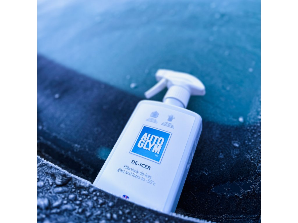 Odstráňte vrstvu snehu. Nastriekajte AUTOGLYM De-Icer postupne na zamrznutý povrch okna zhora na dol. Nechajte produkt chvíľu účinkovať pred použitím stieračov. Zopakujte postup ak je to potrebné. Nastriekajte AUTOGLYM De-Icer priamo na zámok pre dokonalé rozmrazenie mechanizmu. Dbajte na to, aby boli stierače okien a svetlometov rozmrazené pred použitím. Efektívny až do -50°C.