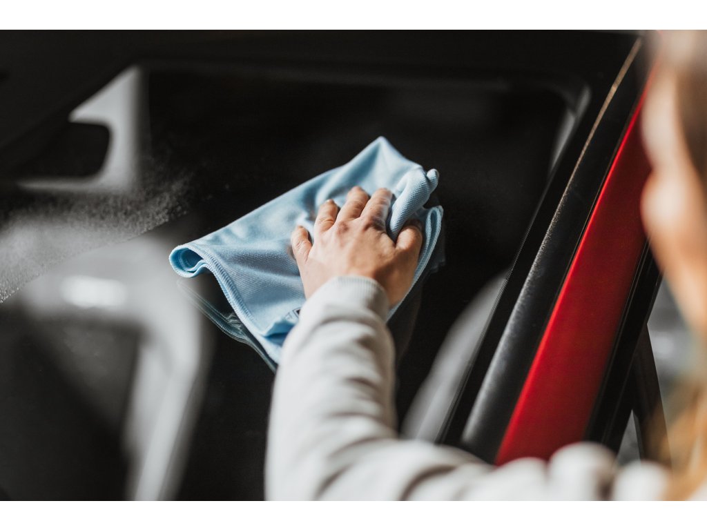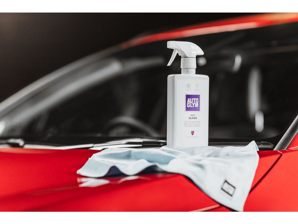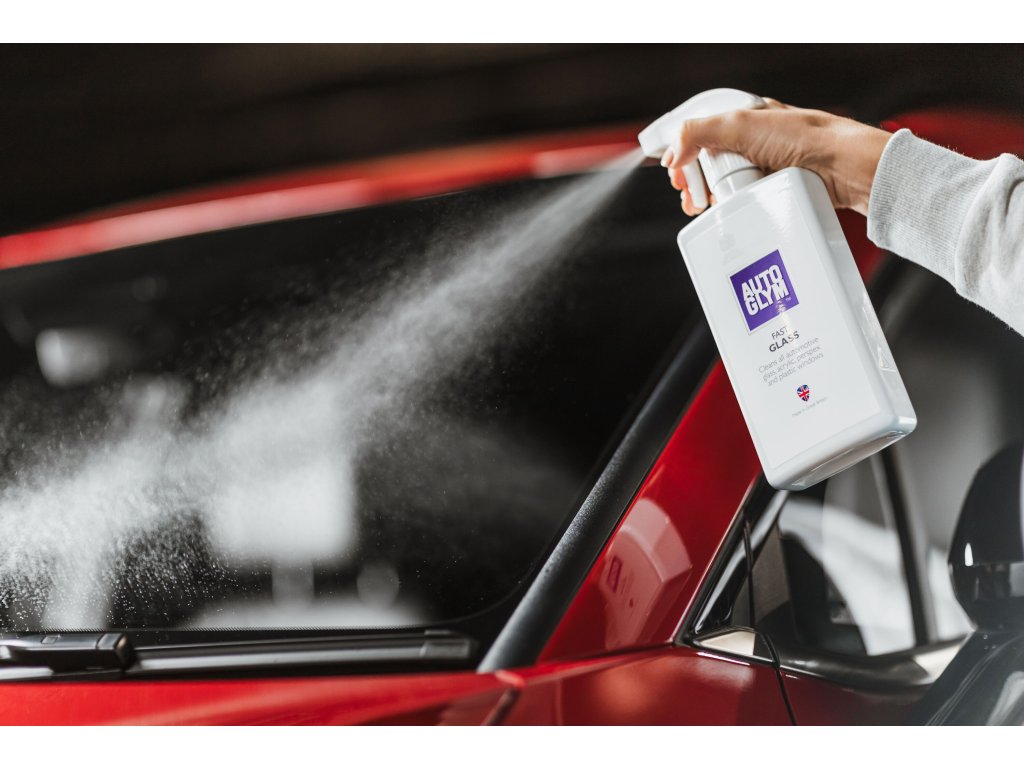 1. Nastriekajte malé množstvo produktu na sklo a rozotrite s AUTOGLYM Hi-Tech Interior Microfibre.