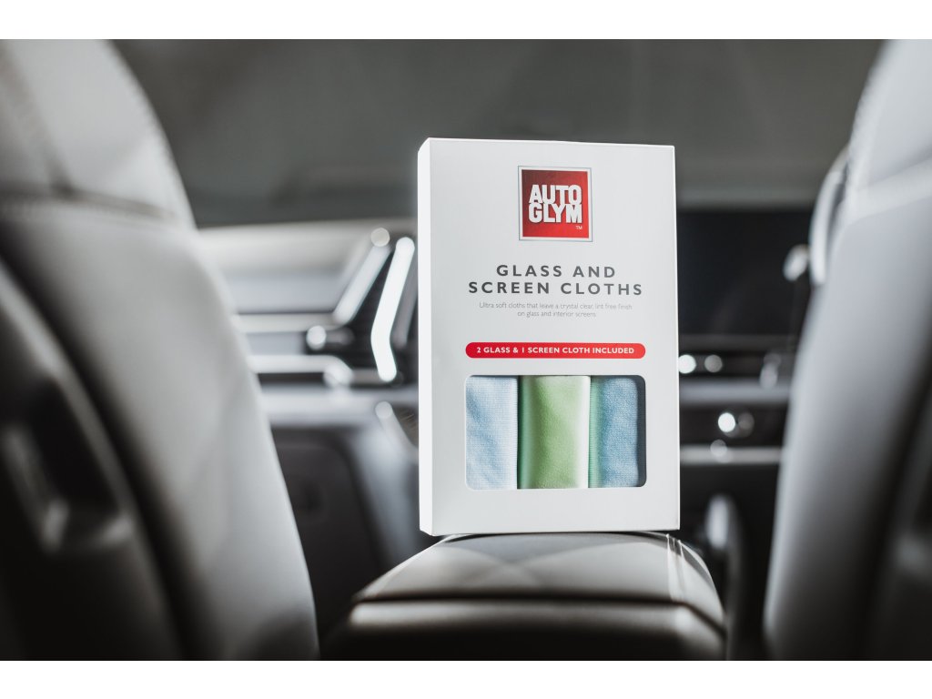 Kvalitné handričky na sklá a displej nezanechávajú pri čistení zvyšky vlákien a dosiahnete rýchle zaleštenie bez rizika šmúh. „Glass Cloth“ majú vysokú absorpčnú schopnosť a mäkké vlákna. Môžete tak tieto handričky používať na interiérové aj exteriérové okná. Zložte handričku na „štvrtinky“, tak aby ste mali 8 vždy čistých častí k dispozícií. Môžete čistiť v kombinácií s AUTOGLYM Fast Glass alebo Car Glass Polish podľa návodu. „Screen Cloth“ je špeciálne vyrobená na čistenie digitálnych displejov.