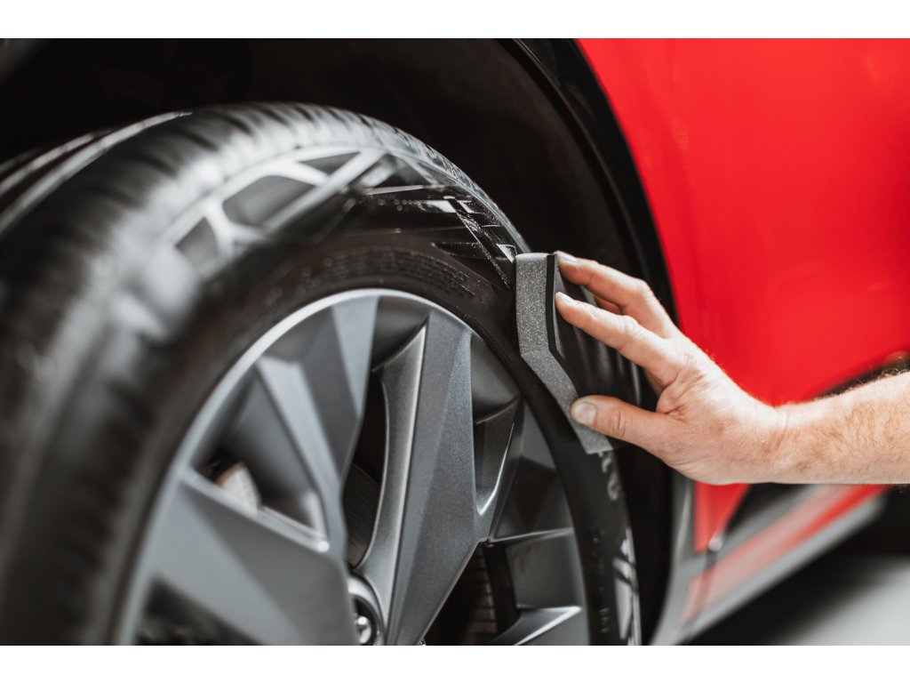 1. Pre dokonalý vzhľad aplikujte na umyté a suché pneumatiky. Naneste malé množstvo gélu na pneumatiky High Performance Tyre Gel pomocou aplikátora.