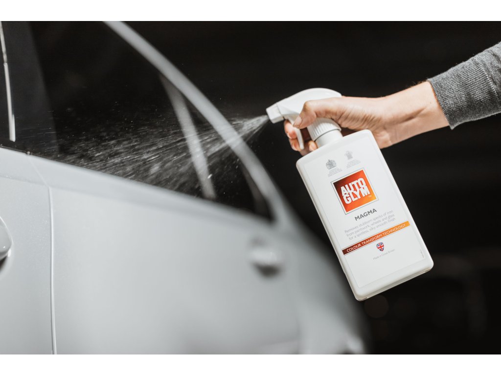 Neaplikujte produkt na priamom slnku, ani v mrazivých podmienkach. Umyte vozidlo so šampónom a dokonale vysušte. Nastriekajte AUTOGLYM Magma na karosériu vrátane diskov a skiel. Počkajte 3-5 minút pokiaľ produkt zreaguje. Ak je to potrebné narušte kontamináciu špongiou alebo umývacou rukavicou. Následne spláchnite prúdom vody a vozidlo vysušte. Pre odstránenie iných druhov kontaminácie ako živica, alebo asfalt, použite AUTOGLYM Clay Detailing Complete Kit.
