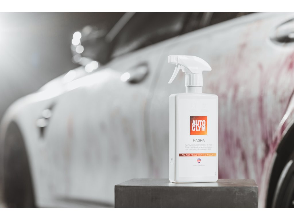 Odstraňuje zvyšky náletovej hrdze z karosérie vozidla vrátanie skiel. AUTOGLYM Magma obsahuje aktívne látky, ktoré pri kontakte s kovovými časťami kontaminácie reagujú a zmenia farbu na červenú. AUTOGLYM Magma je skvelou voľbou pred samotným pastovaním a voskovaním vozidla.
