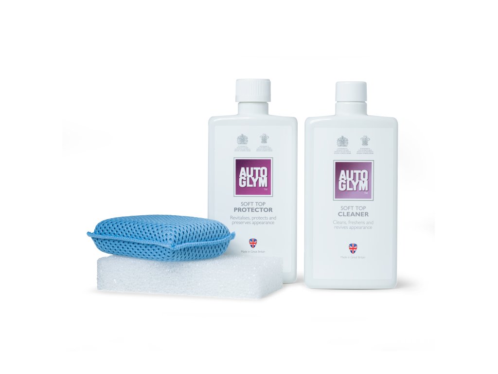 500ml Soft Top Cleaner – čistič , 500ml Soft Top Protector – impregnátor, 1 čistiaca špongia